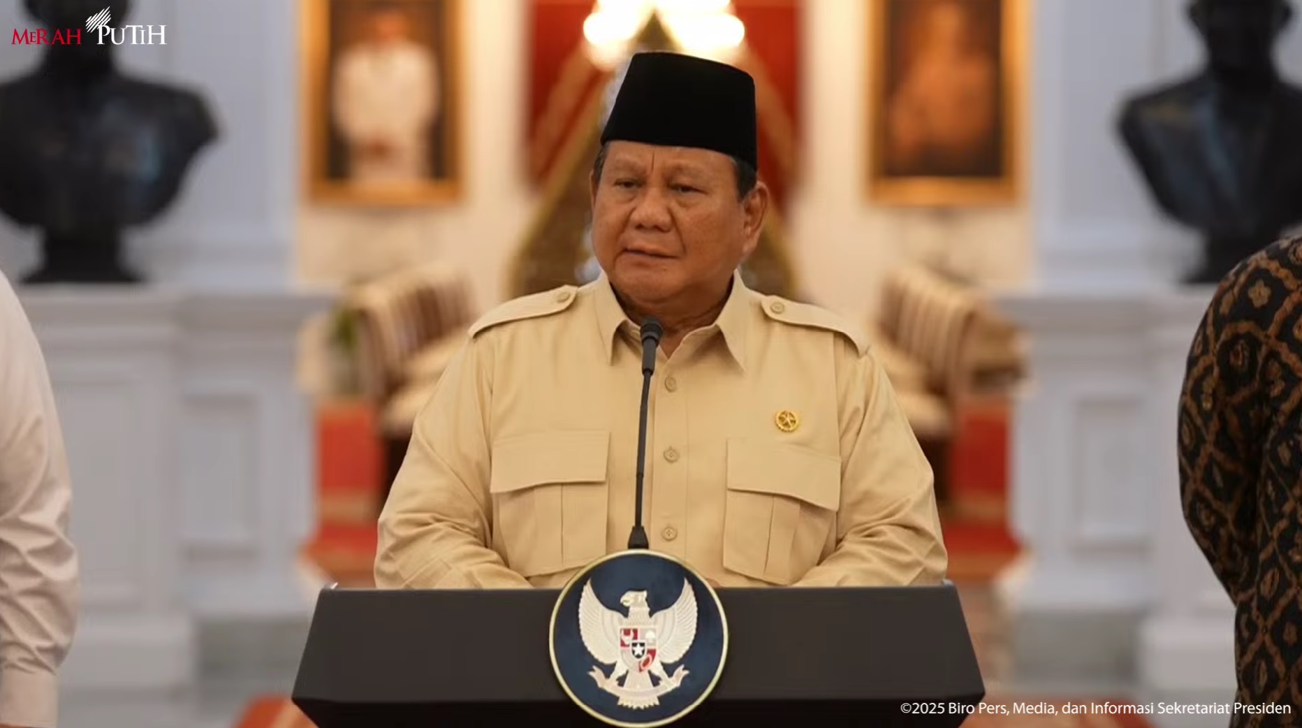 Dalam konferensi pers di Jakarta, Senin (17/1/2025), Presiden Prabowo Subianto umumkan THR ASN dan pekerja swasta cair bulan Maret 2025. (YouTube Sekretariat Presiden)