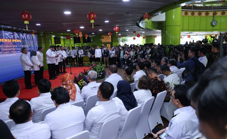 Konferensi Pers Stimulus Ekonomi Hari Besar Keagamaan (HBKN) Idul Fitri 2026, Diskon Tarif Transportasi, FWA, dan Bantuan Pangan di Jakarta, Selasa (10/2/2026). (menpan.go.id)